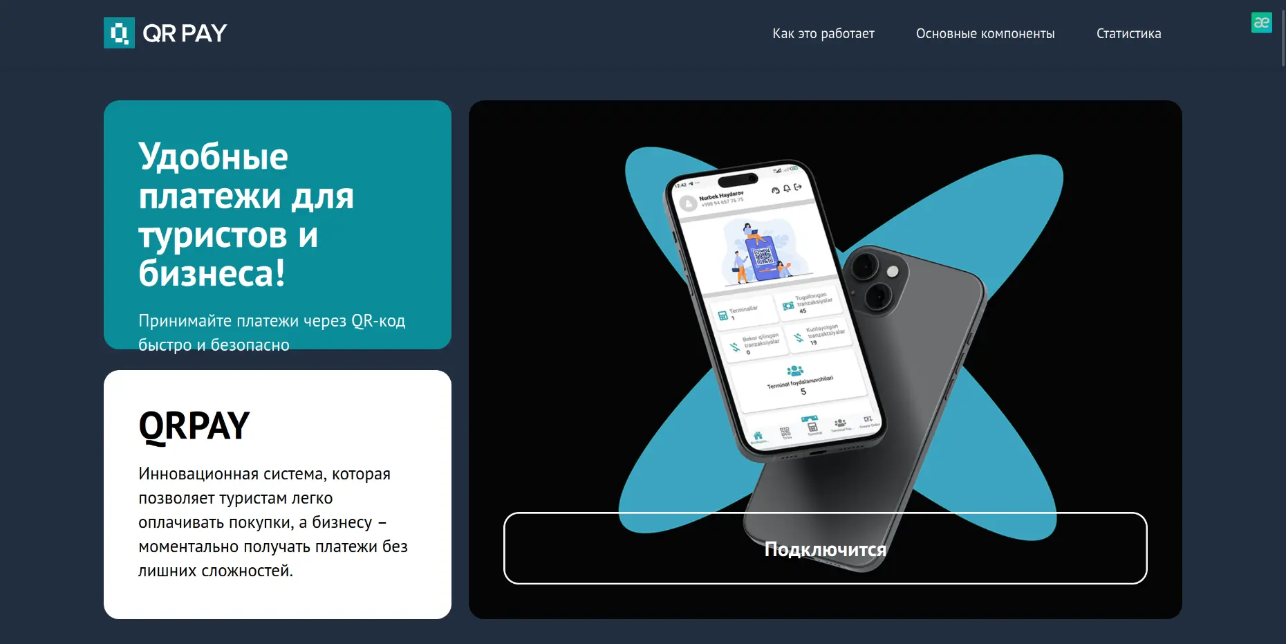 QRPay — A QR code-based payment system with a landing page (qrpay.uz) and an admin panel (my.qrpay.uz) for managing transactions.