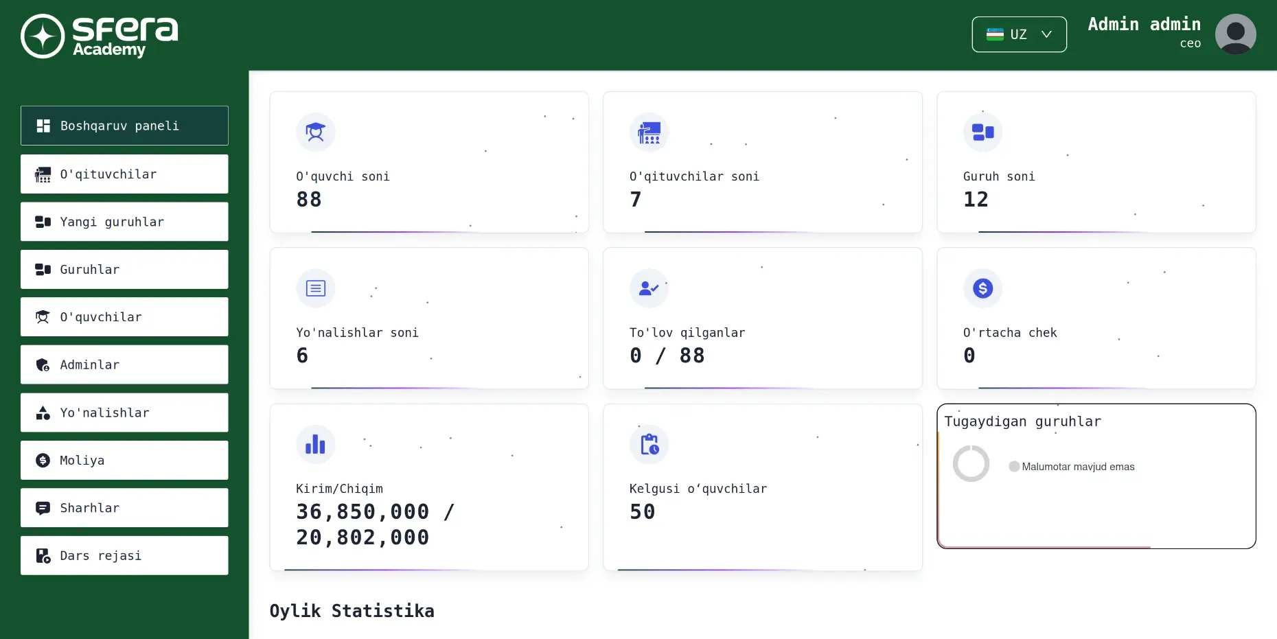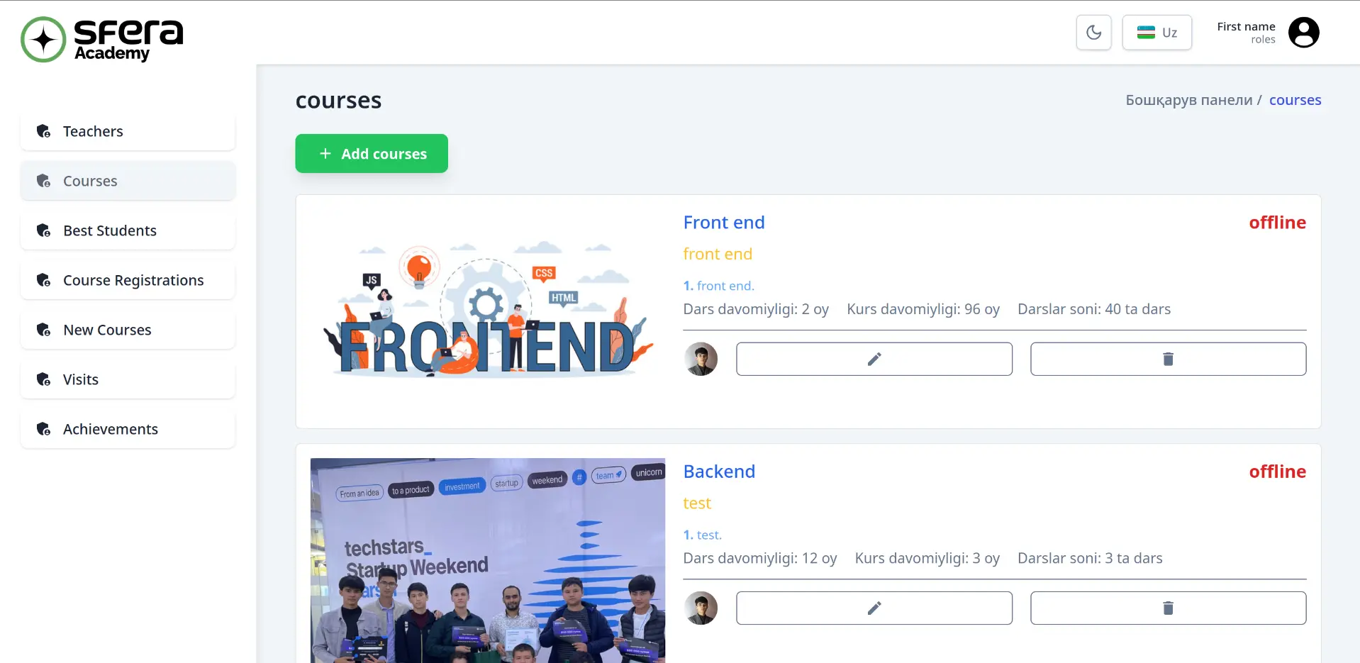 SFERA ACADEMY | ADMIN is the admin panel of SFERA ACADEMY that allows managing courses, users, content, and the overall educational system efficiently.